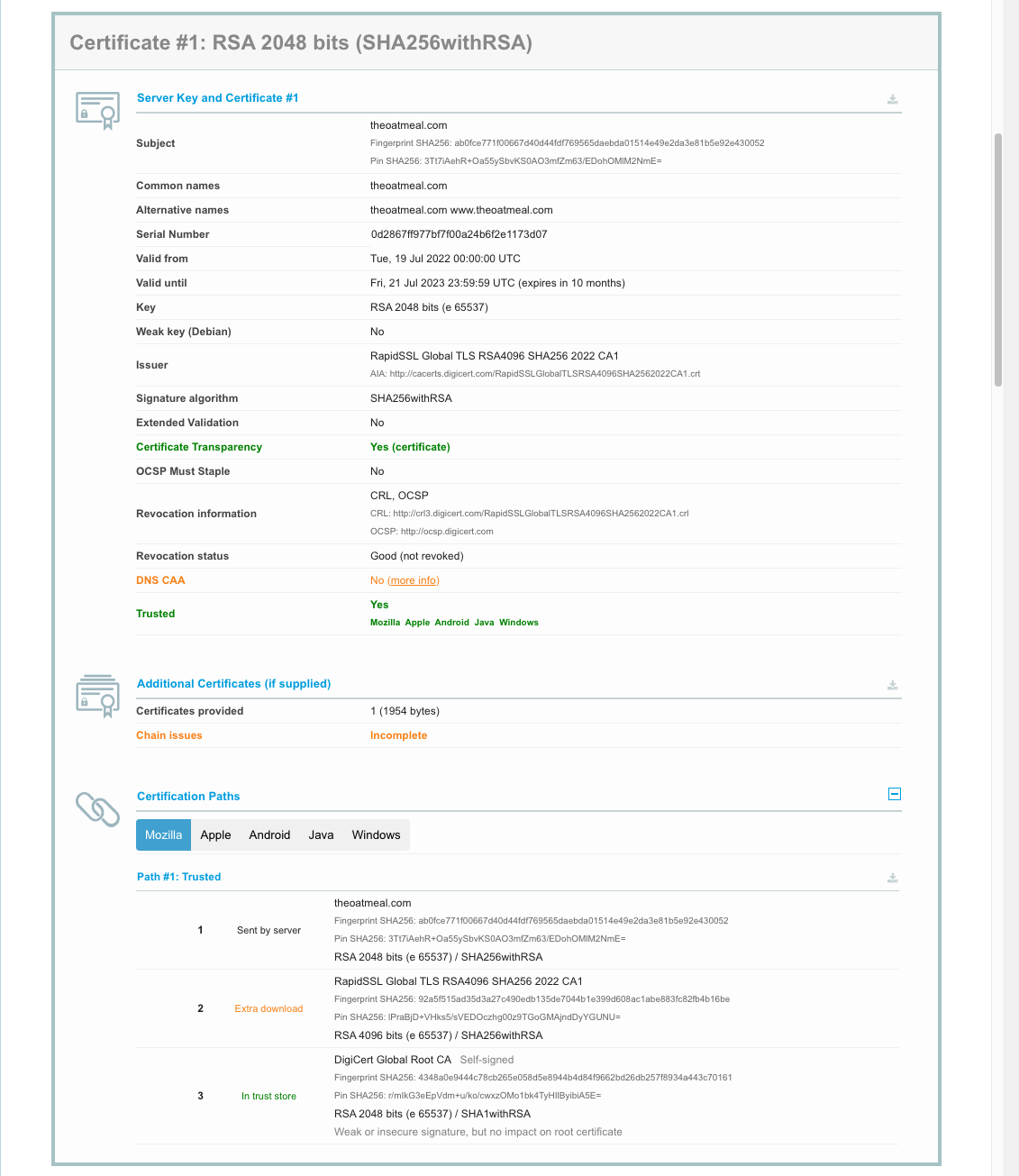 zbuild ~/build>openssl s_client -connect www.theoatmeal.com:443 < /dev/null | openssl x509 -text -noout